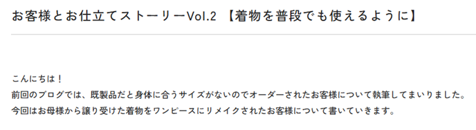 チャットでお客様とやり取りをしていたら、『洋服の仕立てもやっていますか』とご質問されたので、